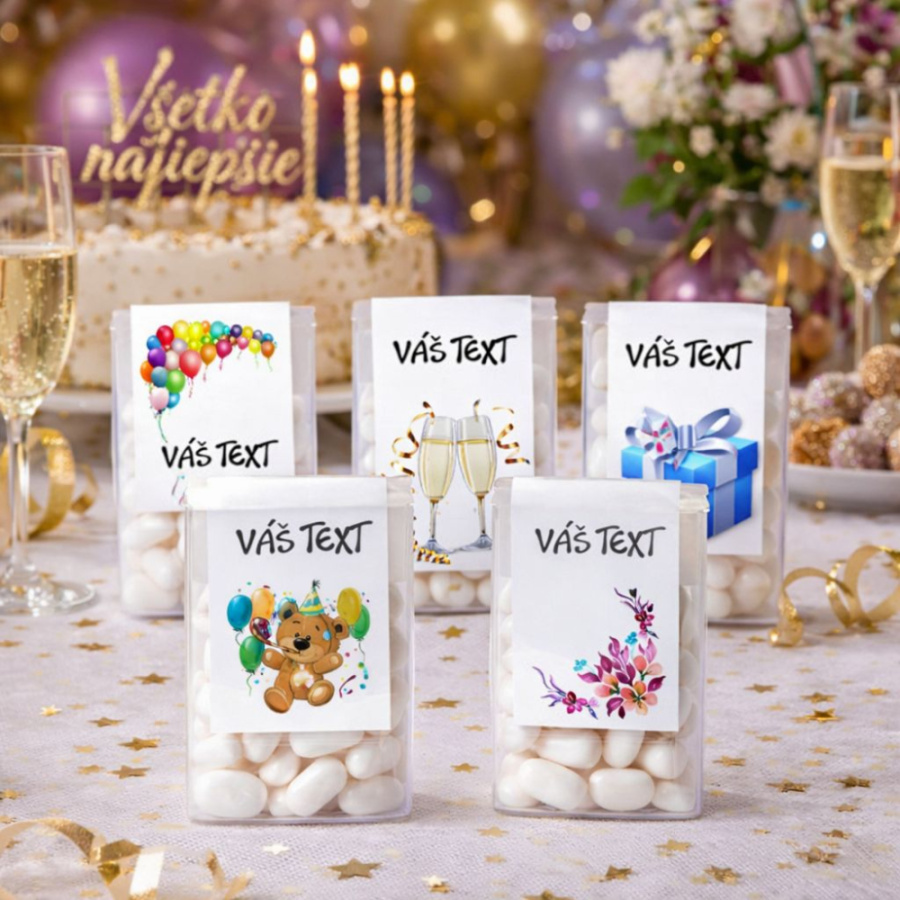 Narodeninové dražé „TIC TAC“ cukríky, ktoré potešia malých aj veľkých a spríjemnia vašu oslavu. Sú vhodné ako malá pozornosť hosťom či priateľom.