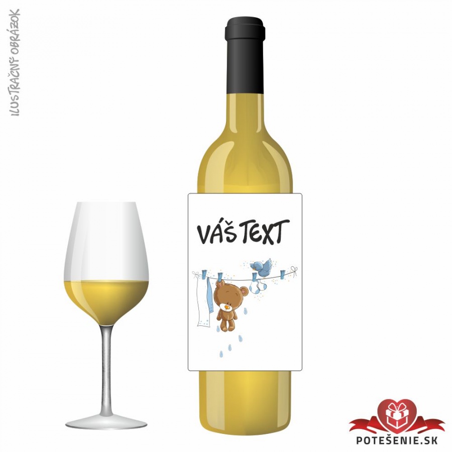 Víno na krstiny s vlastným motívom a textom, rôzne druhy.
